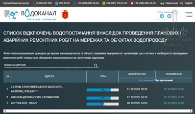 Коммунальные службы 19 октября 2025 года в Одессе и области информируют: