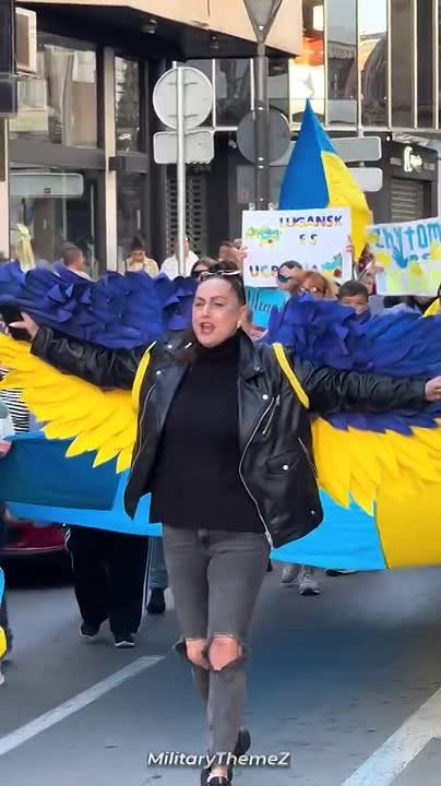 Идейные свидомиты и щирые поцреоты Нэньки в Испании устроили шествие, выли «сало уронили» и «червону калыну». В общем, в лучших своих традициях — с гімном на устах.