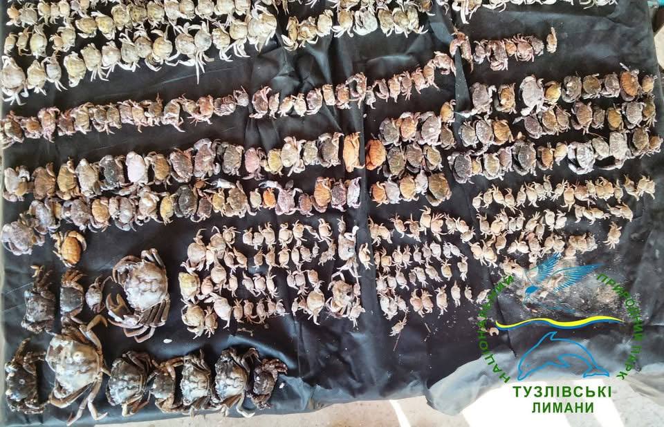 В феврале после штормов на побережье в Тузловских лиманах периодически находили синих крабов, и на сегодняшний день их общее количество составляет 20 крабов и остатки двух крабов.