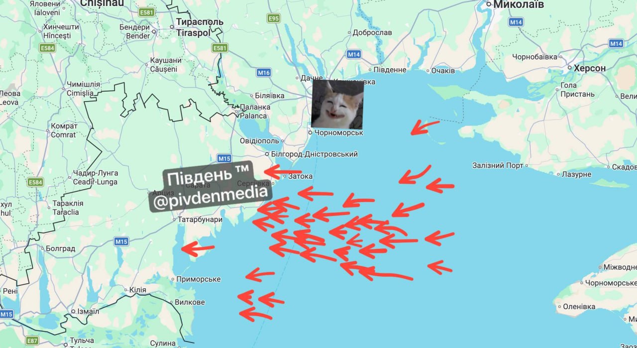 Украинские мониторинговые ресурсы сообщают о большой группе БпЛА курсом на Одесскую область