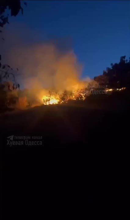 Вчера вечером загорелась Трасса ЗдоровьяСпасатели пытаются всё потушить, но пока огонь бушует.Блокнот Одесса