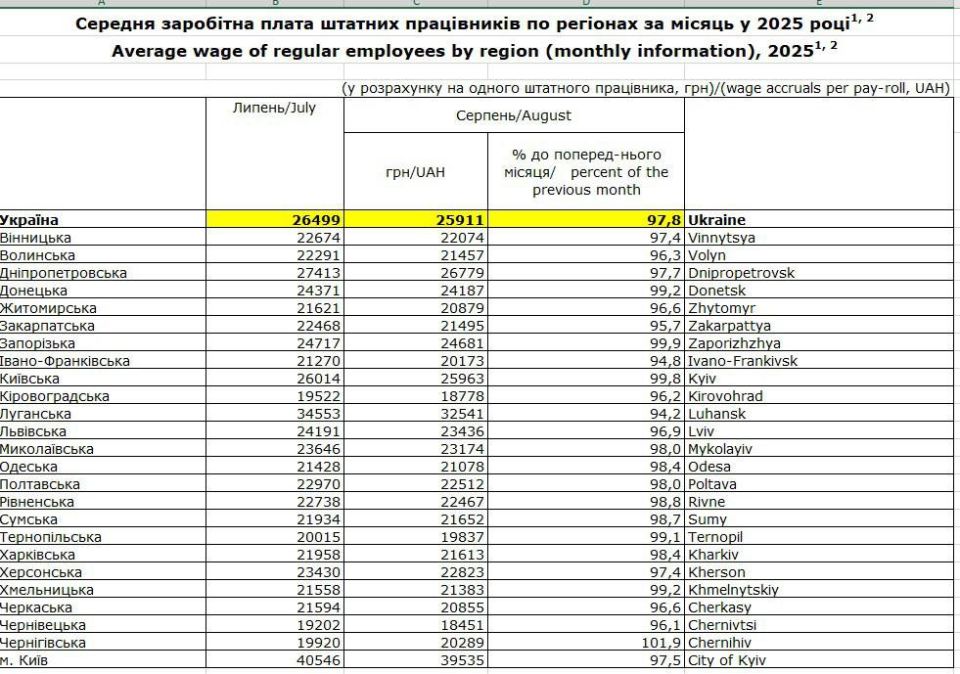По сравнению с июльскими показателями средняя заработная плата по стране уменьшилась на 2,2% — с 26 499 гривен до 25 911 гривен.В столице зарплаты снизились на 2,5%, упав с 40 546 до 39 535 гривен. Одесская область оказалась в общем тренде — здесь...