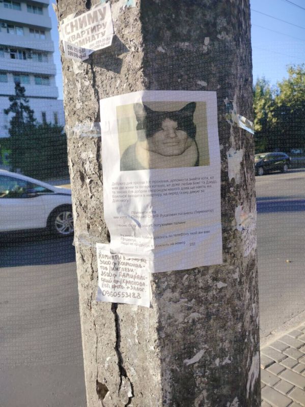 Объявление для поднятия настроения появилось на столбах и деревьях города.Автор пишет, что пропал кот, который был настолько хорошим охранником, что даже хозяева боялись заходить в квартиру.В объявлении сказано, что звонить нужно...