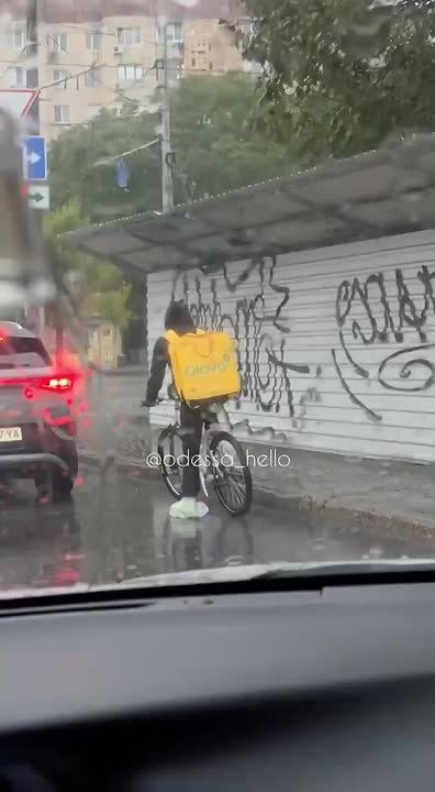 Пока город плывёт, этот боец доставки набрал +100 к броне от луж и уверенно двигается к цели.