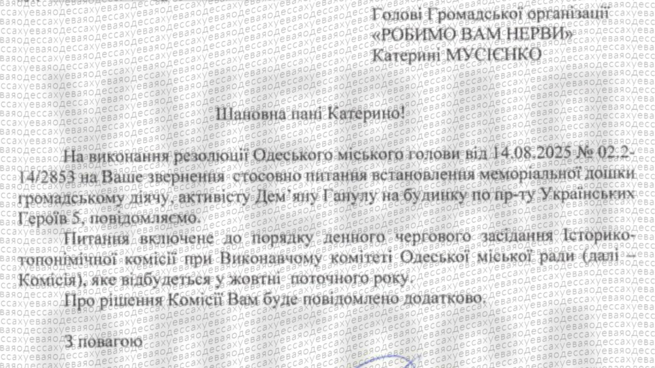 Решение о доске должна принять топонимическая комиссия при ОМР. В обращении активисты предупредили комиссию не принимать необдуманных решений.