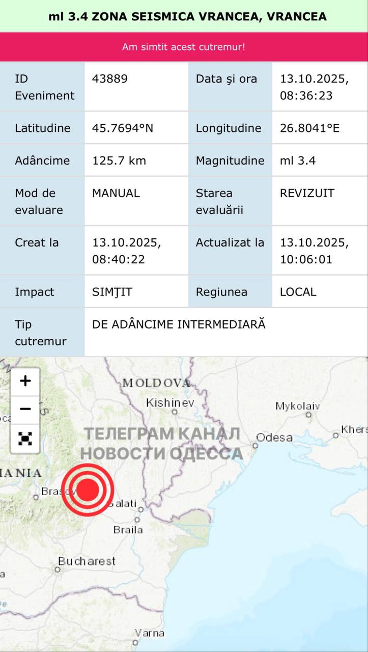 Зона Вранча расположена у границы с Украиной, и все более-менее сильные толчки во время землетрясений могут почувствовать жители Измаильского, Болградского, а часто и Белгород-Днестровского районов.