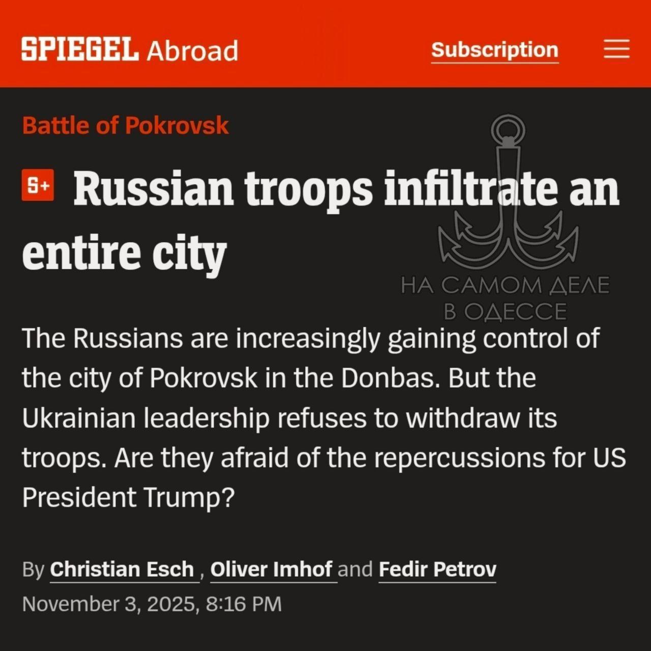 Пока в Покровске идут бои, Просрочка, похоже, играет в другую игру — «Покровск не окружён». По версии Spiegel: украинский лидер боится реакции Трампа.