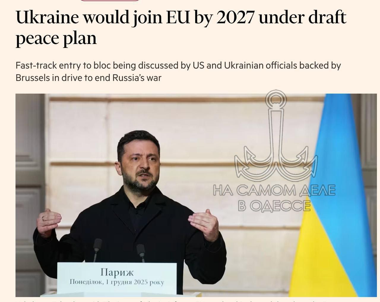 Financial Times и украинские СМИ пишут об одном из пунктов «мирного плана» Трампа — вступлении Украины в ЕС к 2027 году.
