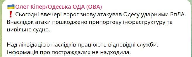 Также он уточнил, что ударом было повреждено судно. Информации о пострадавших нет.