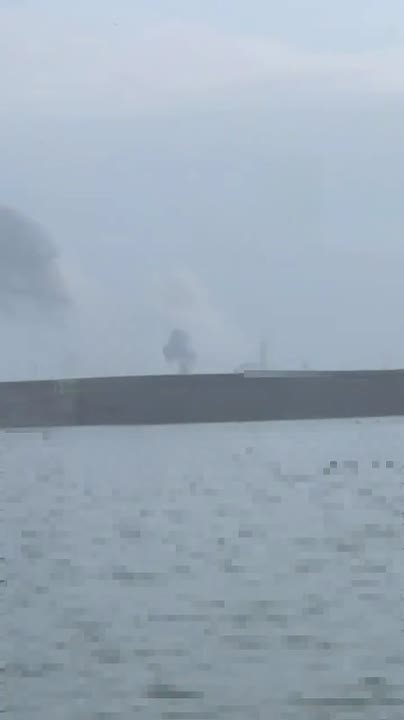 А между тем в порт Ильичёвска прилетело и теперь дымит...