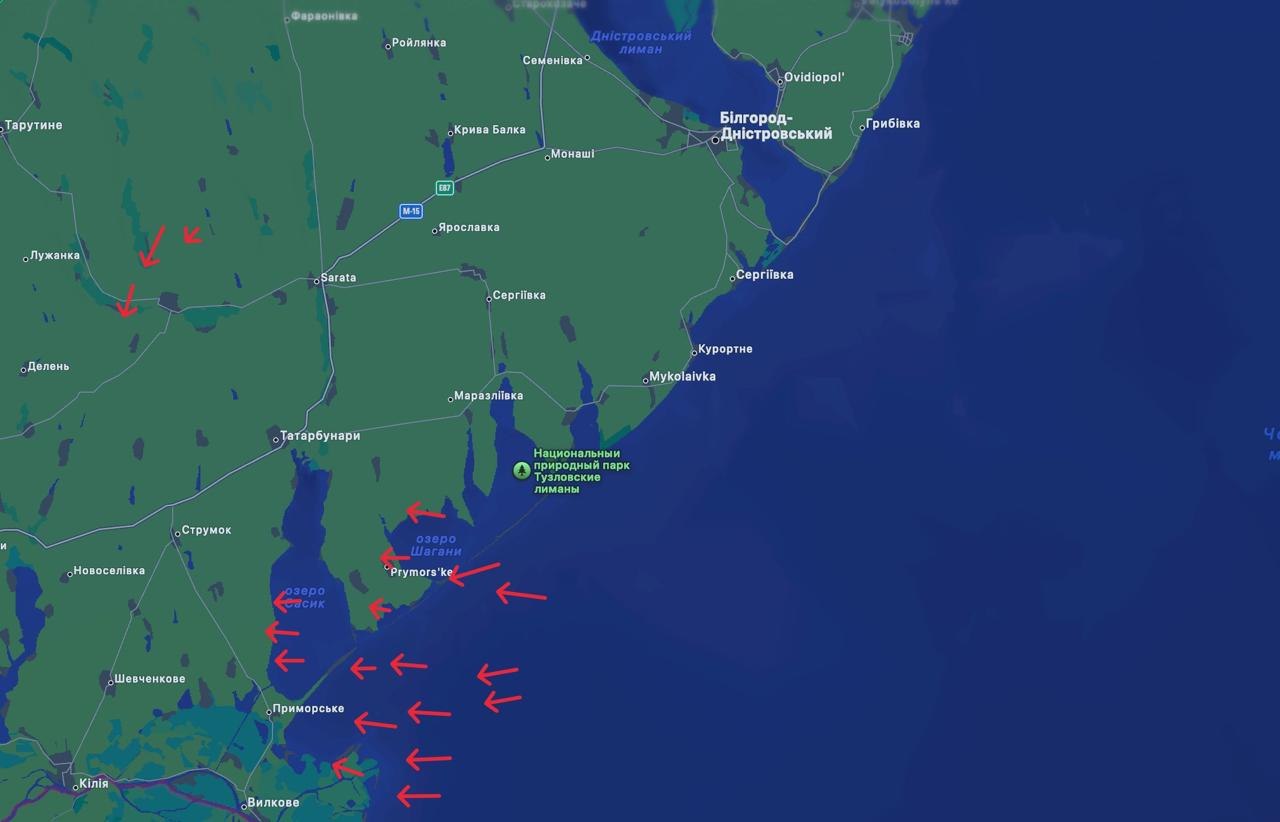 До 20 дальнобойных дронов на подходе к портам на юге Одесской области.