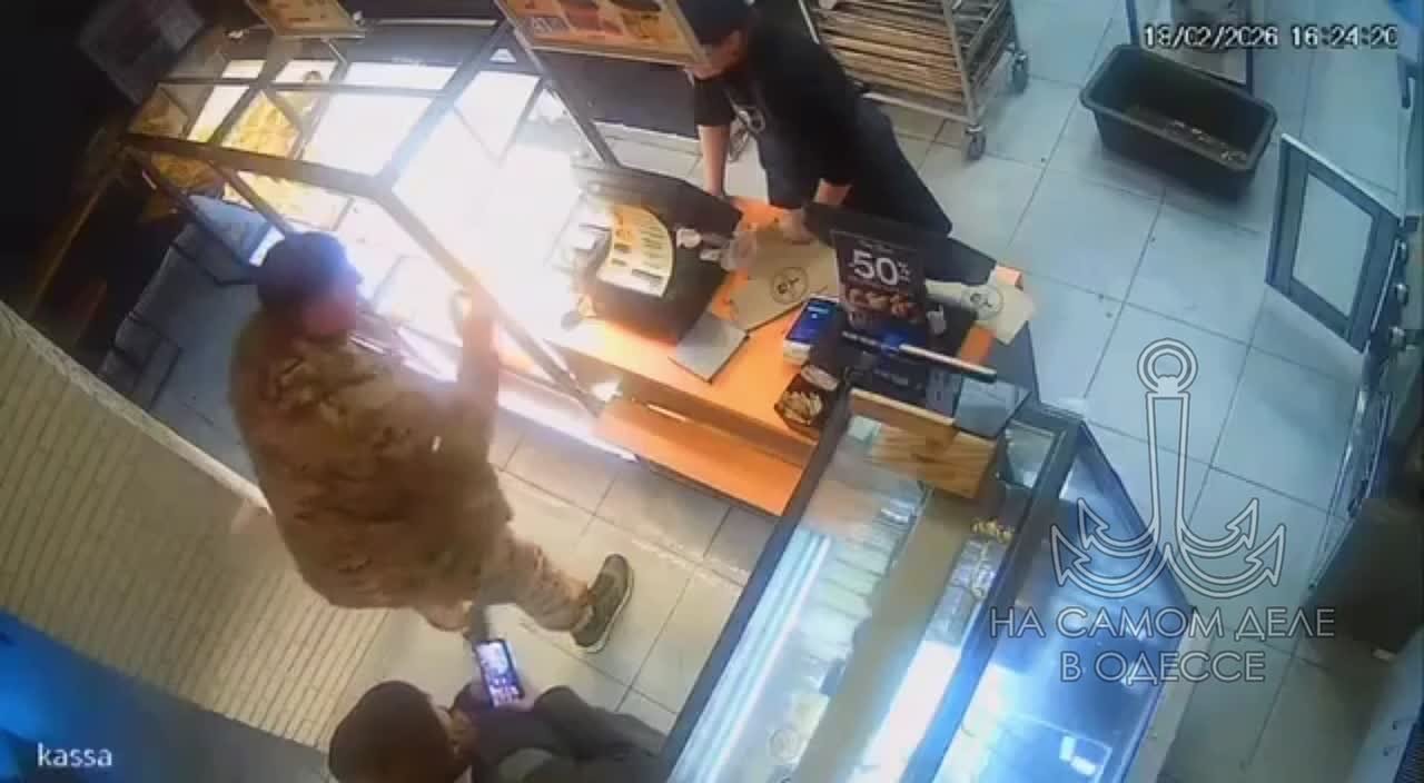 В Одессе херой с передовой (или вообще ТЦКун) пошёл у наступ на фастфуд: нахамил продавщице с применением обсценной лексики и полез в драку.