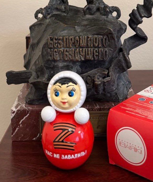 Помощник президента Владимир Мединский представил новую патриотическую игрушку — Z-неваляшку с георгиевской лентой. Куклу производит тамбовское предприятие «Котовские неваляшки».