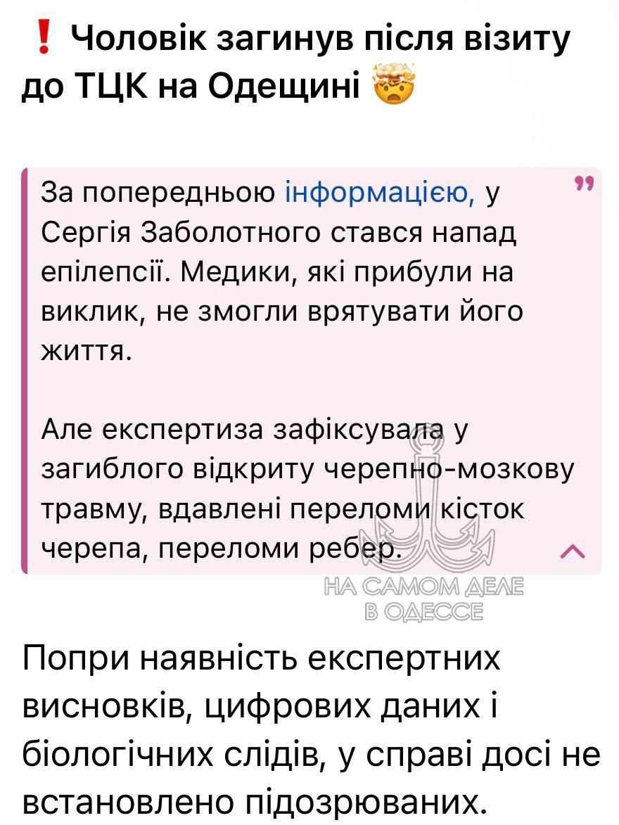 То есть подозреваемых до сих пор не установили? Весь отдел ТЦК — это подозреваемые. Это чистой воды убийцы, преступники, террористы.