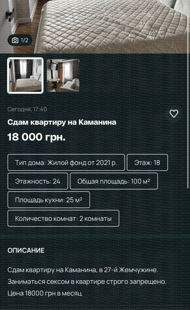 В Одессе сдают квартиру, в которой нельзя заниматься сексом