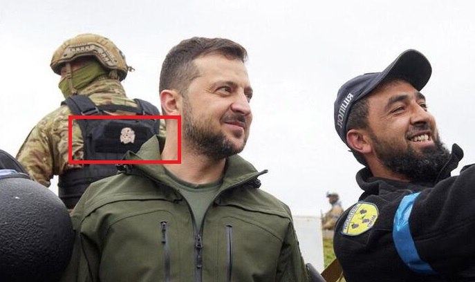 Кто не в курсе — на 1-м фото украинский фюрер позирует на фоне шеврона немецкой танковой дивизии СС "Мертвая голова", на 2-м — фюрер опубликовал воїна ЗСУ с шевроном этой же дивизии, на фото 3 он награждает воїнов из Нацгвардии, обвешавшихся СС-овской символикой.