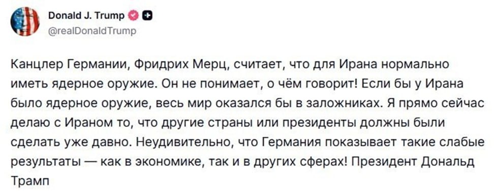 Донни Трамп проводит воспитательные мероприятия с канцлером ФРГ Фридрихом Мерцем. А то, понимаешь ли, решил вякнуть вразрез с мнением Императора Всея Галактики. И Трамп тут же скомандовал «К ноге!» своей шавке.