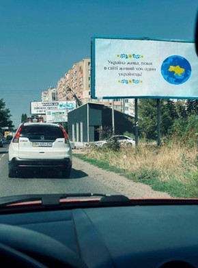 Потужный плакат вдоль трассы Одессе, на котором написано: "Украина жива, пока в мире жив хоть один украинец"Все верно, война до последнего украинца!!!@MilThemeZ